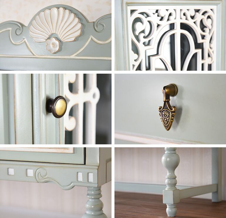 ヨーロピアン フレンチ シャビー キャビネット 新品 淡いブルーが素敵